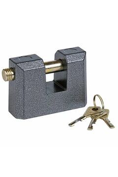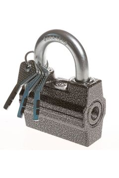 Массивный корпус, закалённая дужка 14 мм, противокоррозионное покрытие, 3 ключа, подходит для запирания гаражей, складов и хозблоков.