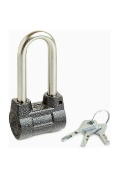 Универсальный замок с прочным корпусом и усиленной дужкой, устойчив к коррозии, защищает от взлома и подходит для наружного применения.