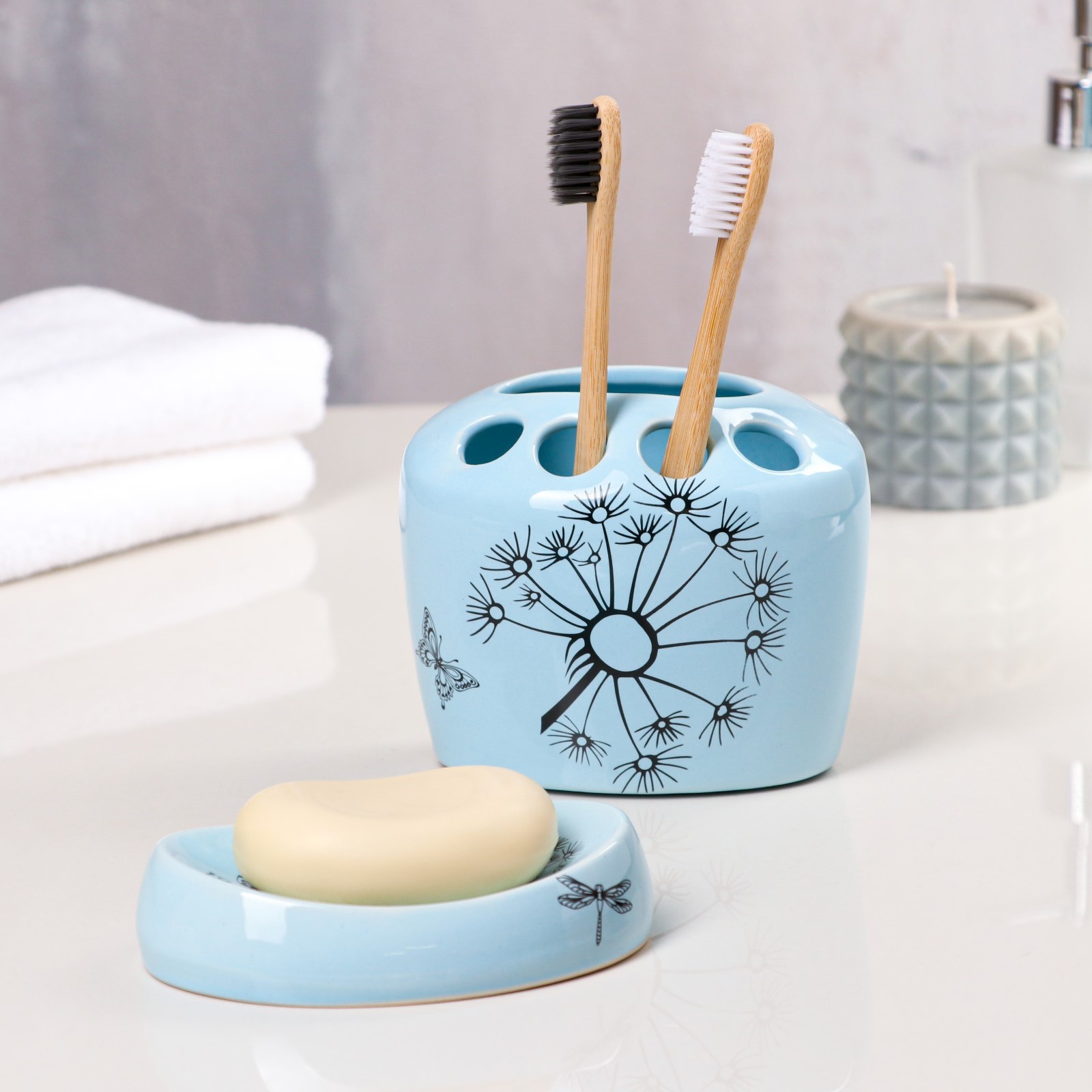Набор аксессуаров д/ванной Одуванчики 2 пр голубой/деколь микс 7447327 в Лесозаводск