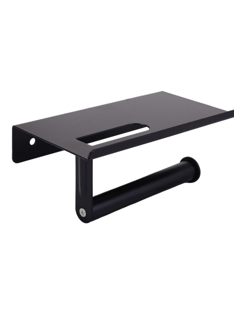 Многофункциональный держатель для туалетной бумаги с полкой, выполненный в стильном черном цвете, идеально подходит для современных ванных комнат, санузлов общественных и коммерческих помещений. Практичная полка обеспечивает удобство хранения мелких предметов, смартфонов или средств гигиены.