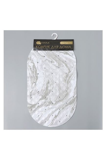 Состав: ПВХ. Цвет: серый. Форма: овальная. На присосках. Стильный коврик 38×68 см с мраморным дизайном, антискользящим покрытием и присосками для вашей безопасности и уюта в ванной.