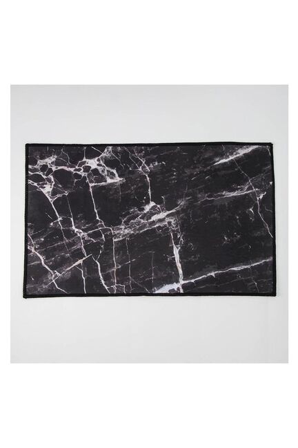 Состав: ПВХ, полиэстр. Цвет: черный. Тип ворса: с коротким ворсом/гладкие. Противоскользящий коврик 50×80 см с водоотталкивающей поверхностью и стильным мраморным дизайном для безопасной и уютной ванной.