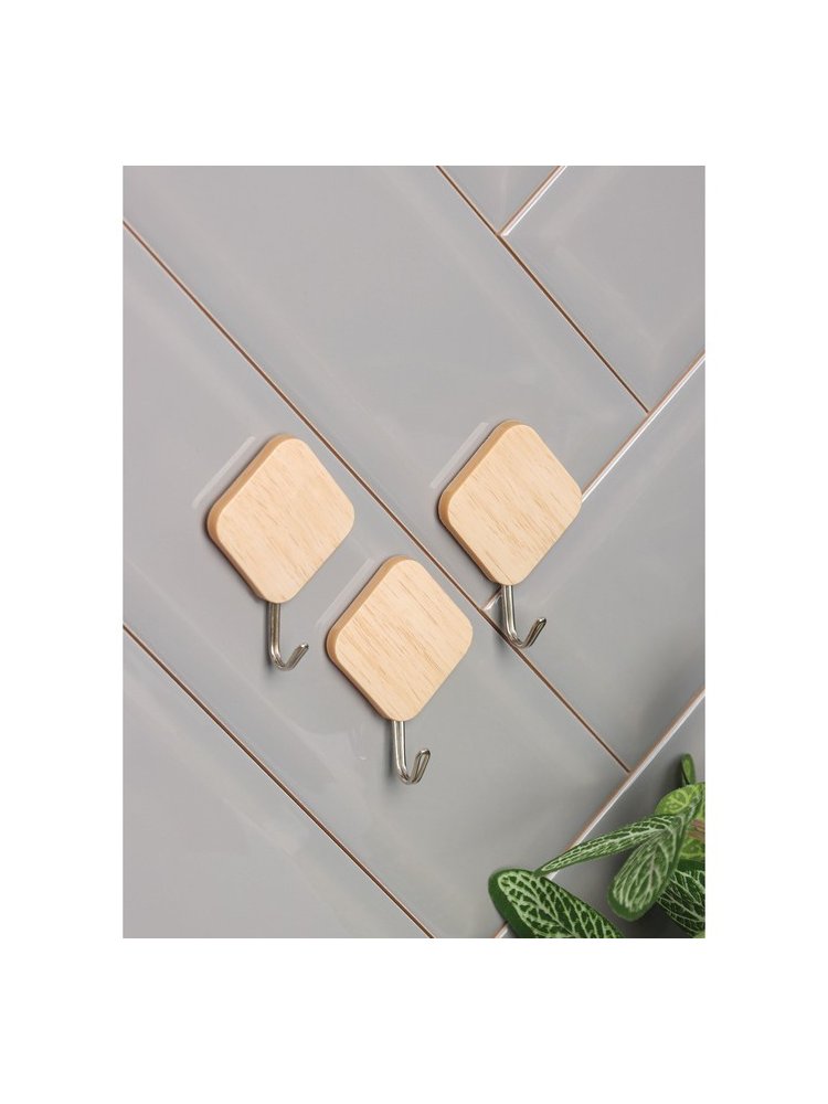 Стильные крючки на липучке с отделкой под светлое дерево — идеальное решение для быстрой и аккуратной организации пространства. Подходят для ванной, кухни, прихожей или мастерской, легко справляются с размещением полотенец, инструментов, кухонных аксессуаров и других предметов без сверления и повреждения поверхности.