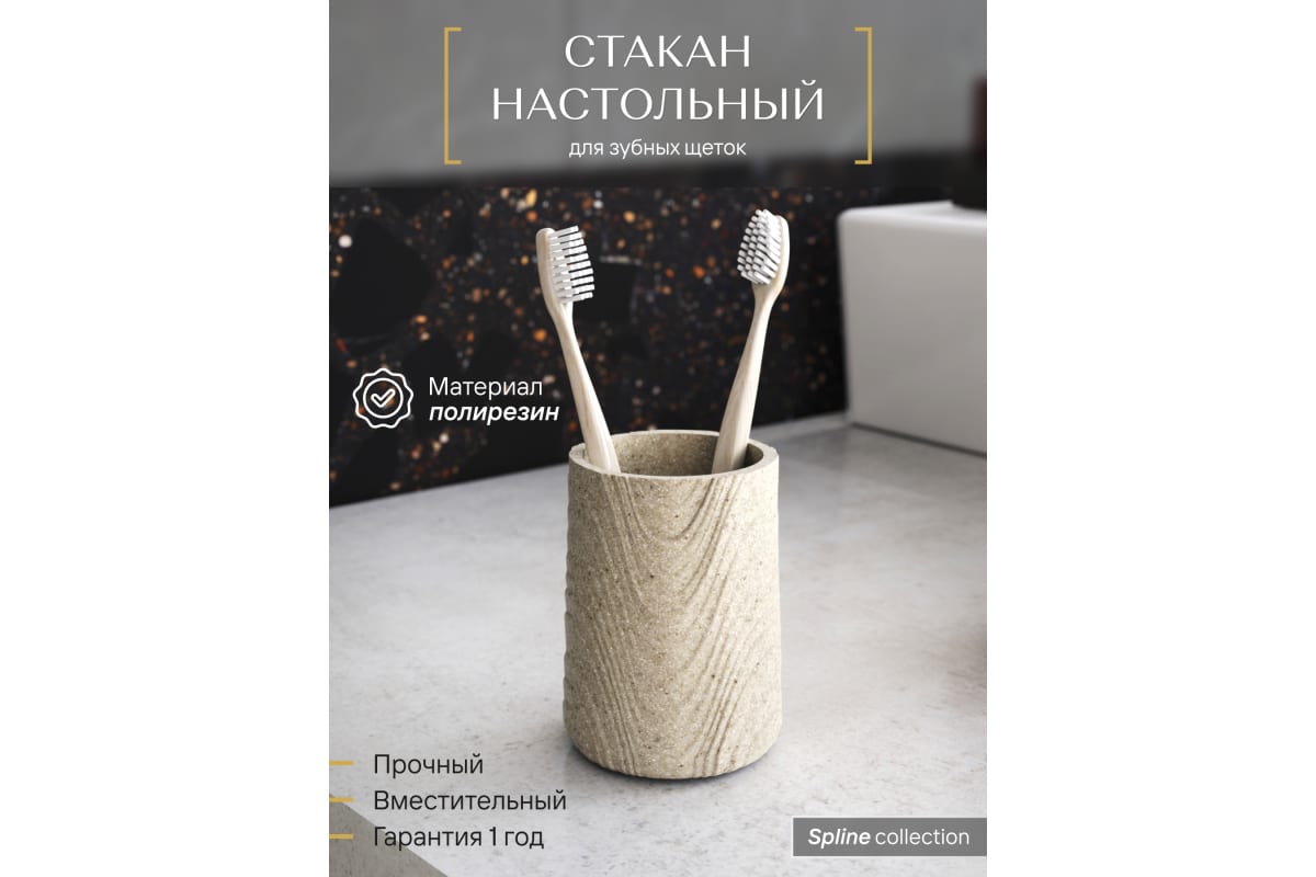 Стакан д/зубных щеток, полирезин, бежевый "Fora Spline" SPN044 в Лесозаводск
