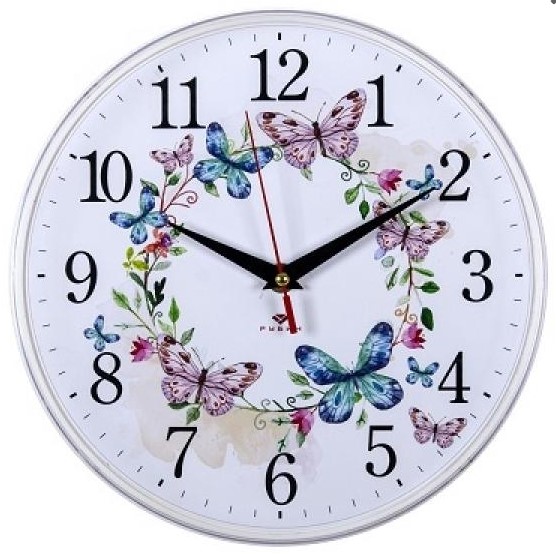 Часы настенные (d=25) "Венок из бабочек", корпус белый 2524-141 в Лесозаводск