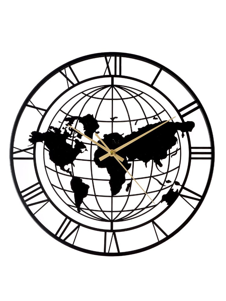 Стильные настенные часы диаметр - 40 см с картой мира, кварцевый механизм, большие цифры, прочный корпус — идеально для дома и офиса.