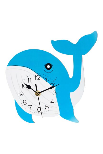 Настенные детские часы 26×23 см, дизайн «Синий кит», кварцевый механизм, безопасные материалы, отлично подходят для детских комнат и школ.
