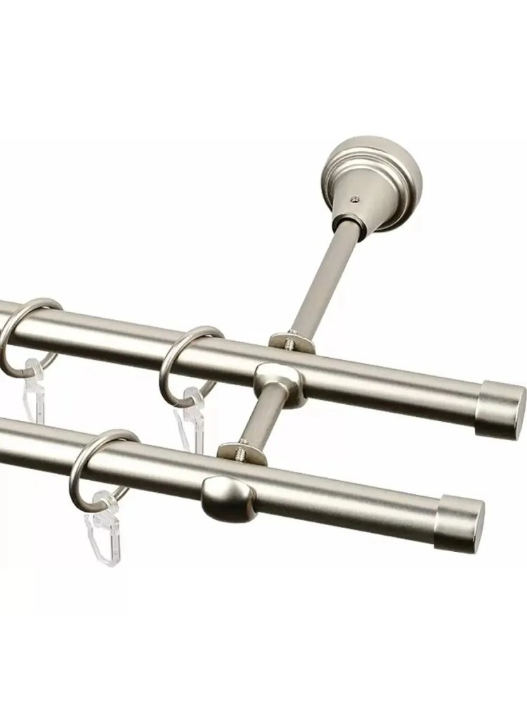 Карниз кованый в цвете сатин представляет собой элегантное и прочное решение для оформления оконных проемов. Изготовлен из высококачественного металла с гладкой поверхностью, что придает ему стильный и современный вид. Двухрядная конструкция позволяет использовать как легкие, так и тяжелые шторы, обеспечивая надежную фиксацию. Покрытие сатин устойчиво к коррозии и механическим повреждениям, что гарантирует долговечность изделия. В комплекте предусмотрены все необходимые крепления для установки.
