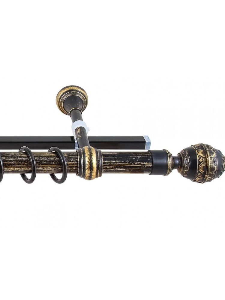 Стильное решение для современных и классических интерьеров — элегантный круглый карниз с черной патиной и золотым декором. Идеально подходит для крепления двух рядов штор и тюля в гостиных, спальнях, офисах и залах. Такой карниз обеспечивает надежную фиксацию текстиля, легко выдерживает плотные и тяжелые полотна, не прогибается и служит долгие годы.