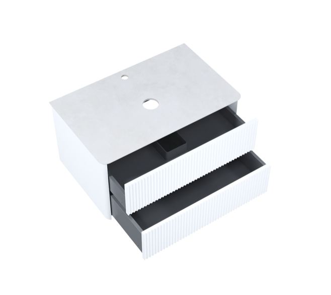 Стильная подвесная тумба для ванной комнаты Aiger с выдвижными ящиками и столешницей из керамогранита – красивый лаконичный дизайн вне времени с трендовой вертикальной фрезеровкой.