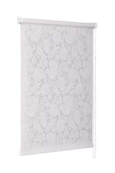 Рулонная штора 140×170 см, белая с узором розы, защищает от солнца и взглядов, простая в установке и уходе, подходит для дома и офиса.