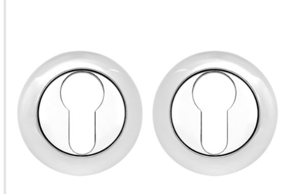 Хромированная накладка цилиндрового типа стойкая к коррозии, защищает замок и идеально подходит для межкомнатных и входных дверей.