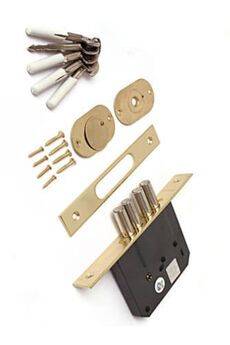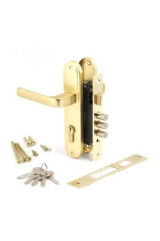 Врезной замок с золотым покрытием, межосевое расстояние 60 мм, подходит для любого типа дверей, надёжный корпус, простой монтаж.