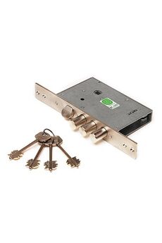Предназначен для запирания левых и правых дверей толщиной 40-50мм. Имеет 3 ригеля . Удаление ключевого отверстия (backset)- 51 мм Корпус и планки оцинкованы. Комплектуется шестиугольными накладками. Рекомендуется использовать для запирания внутренних дверей и подсобных помещений. Замок имеет сертификат качества. Количество секретов 7000 вариантов. Выход засова 22мм. Диаметр ригеля 11мм. Габаритные размеры:корпус 75х82х16; планка 22х140х2,5мм. Надёжный врезной замок с 4 ригелями, цилиндровым механизмом, защитой от взлома и универсальной установкой для металлических и деревянных дверей.
