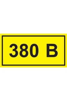 Самоклеящаяся этикетка 40×20 мм, символ 380В, стойкая к влаге и УФ, для маркировки электрооборудования и щитов под высоким напряжением.
