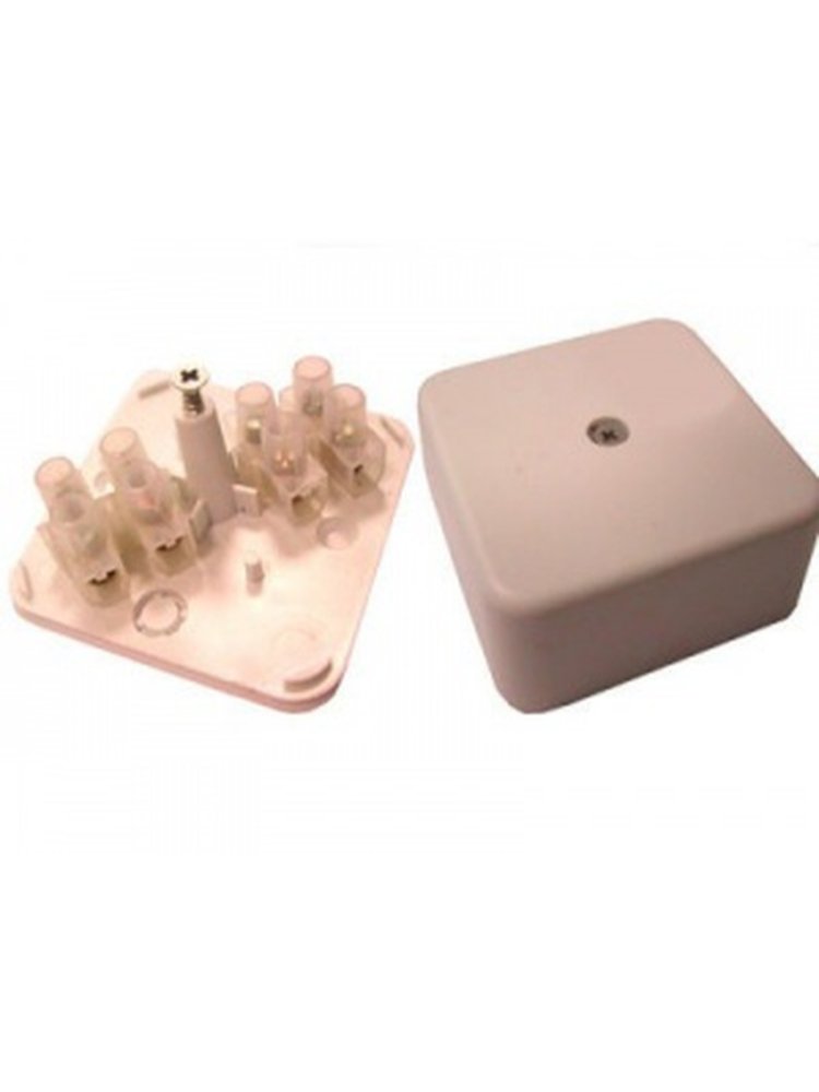 Накладная коробка 50×50/55×55 мм с контактной группой обеспечивает быстрый и безопасный монтаж соединений электропроводки.