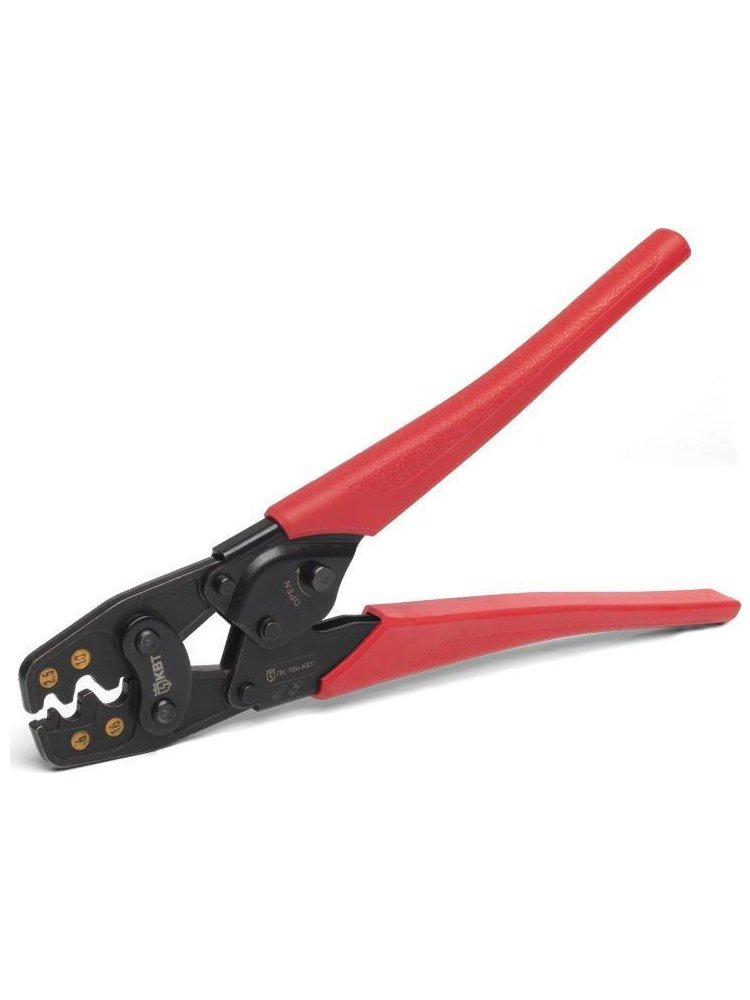 Инструмент для опрессовки изолированных и неизолированных наконечников, а также разъёмов. Пресс-клещи, оснащенные храповым механизмом, обеспечивают блокировку обратного хода и полный цикл опрессовки. Применяются для работ по обжимке многожильных кабелей и проводов. Степень опрессовки определяет механическую прочность и электрическое сопротивление контактного соединения. Инструмент используют для соединения наконечников на автомобильной проводке, для оконцевания кабеля перед подключением к электрощиту или потребителю и т.д. Обжимает наконечники 2,5–16 мм², эргономичные ручки, надёжность соединения, инструментальная сталь, быстрый обжим.