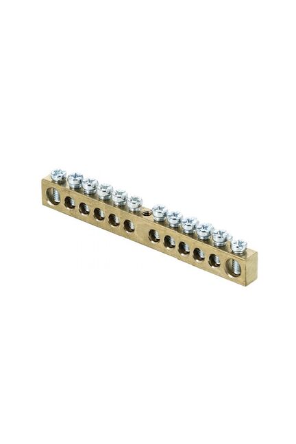 Нулевая шина 8х12 мм на 12 зажимов, монтаж по центру, для удобного подключения нулевых проводов в электрощитах любой конфигурации.