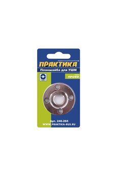 Планшайба ПРАКТИКА предназначена для угловых шлифовальных машин. Применяется для установки дисков с посадкой 22.2 мм. Фиксация гайки производится при помощи штырькового ключа. Расстояние между отверстиями – 35 мм. Резьба гайки – М14. Быстрая и надёжная фиксация дисков 115–230 мм на УШМ, совместимость с М14, прочный металл для долгой службы, удобство и безопасность эксплуатации.