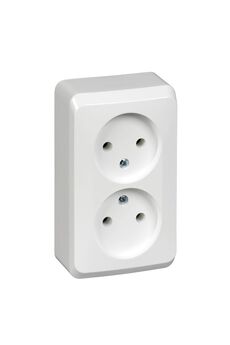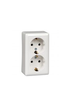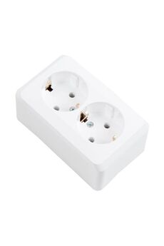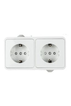 Двойная розетка с изолирующей пластиной, максимальная нагрузка 16А, алюминиевый корпус, накладной монтаж, безопасна для детей.