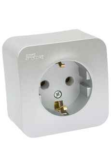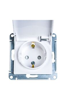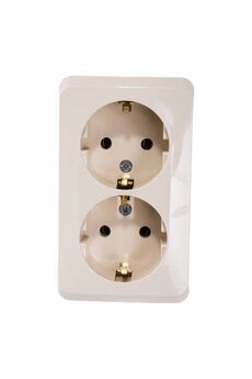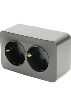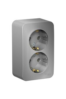 2-постовая накладная розетка с заземлением, изолирующей пластиной и алюминиевым покрытием для безопасного подключения электроприборов.