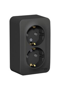 Двойная розетка с заземлением 16А, монтаж О/У, изолирующая пластина, стиль антрацит. Безопасная и удобная для бытовых и профессиональных помещений.