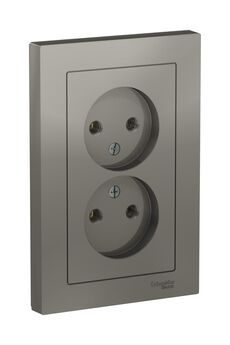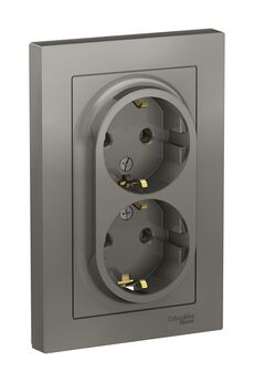 Компактная двойная розетка без заземления со шторками, 16А, грифель. Безопасна для детей, устойчива к износу и отлично впишется в современный интерьер.