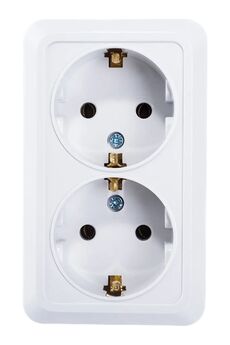 Двухместная розетка с заземлением и шторками, защищает от поражения током, подходит для бытового и офисного применения, легко монтируется.