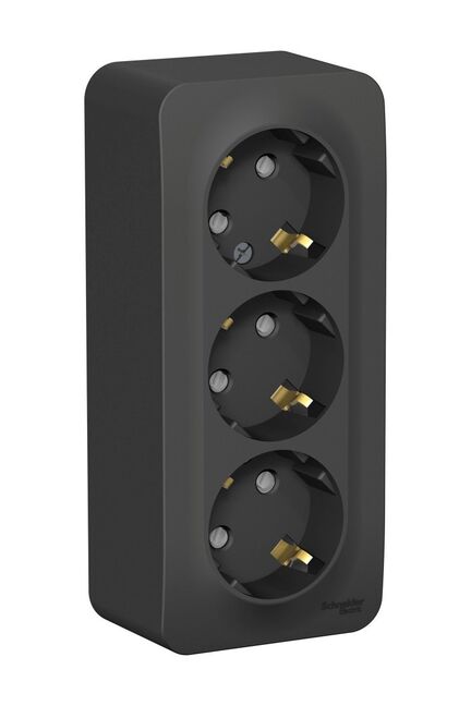 3-постовая розетка, накладной монтаж, изолирующая пластина, 16А, 250В, антрацит — безопасное решение для подключения сразу трёх устройств.