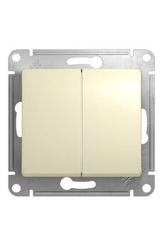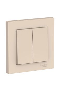 Двухклавишный моноблочный выключатель, бежевый, для управления двумя световыми зонами. Прочный пластик, удобный монтаж, современный дизайн.