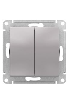 Двухклавишный механизм для управления двумя линиями освещения, стильный алюминиевый цвет, надежность, удобство монтажа, долговечность.