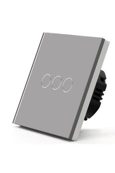 Трёхканальный сенсорный выключатель с программируемыми режимами, серый цвет, подходит для современных интерьеров и умного управления освещением.