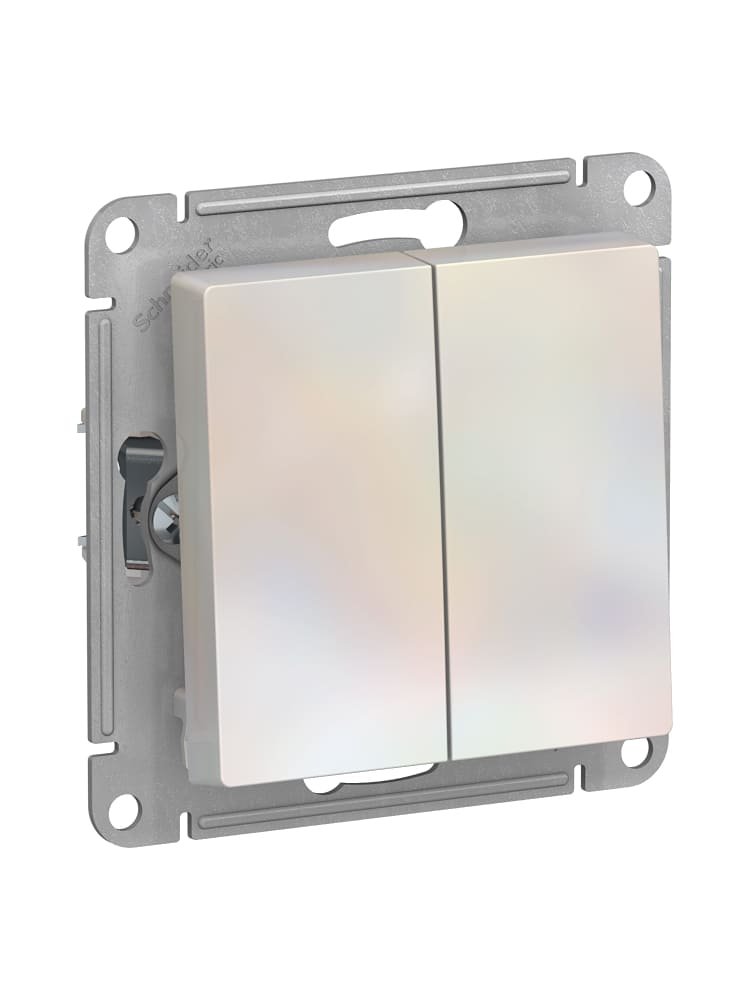 Ищете идеальный выключатель для современного интерьера? Двухклавишный моноблок AtlasDesign SE в оттенке жемчуг — оптимальное решение для жилых и коммерческих помещений. Он обеспечивает надежное управление освещением двух групп светильников из одной точки, подходит для установки в квартирах, офисах, загородных домах.