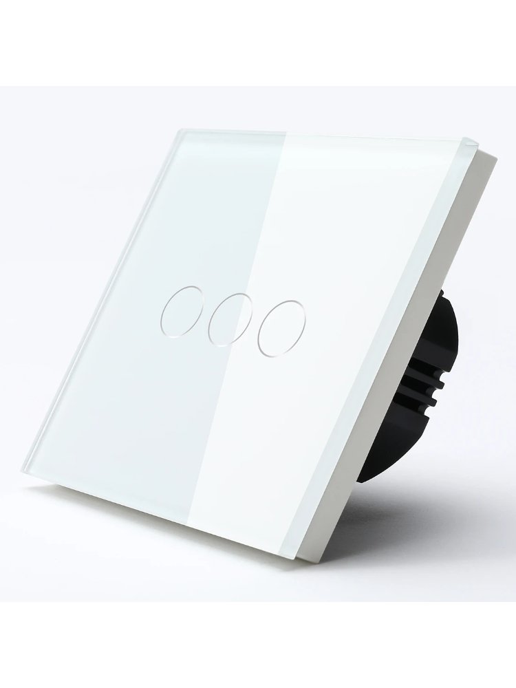Сенсорный 3-канальный выключатель с программированием, белый, для удобного и современного управления освещением в доме или офисе.