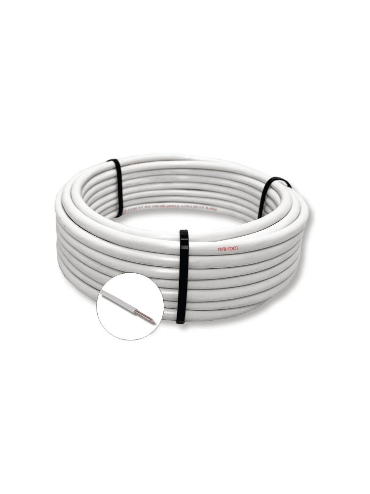 Провод ПВ-1 2,5 мм² белого цвета — оптимальное решение для электромонтажа в жилых и коммерческих помещениях, подходит для прокладки в распределительных щитах, освещения и других электрических сетей.
