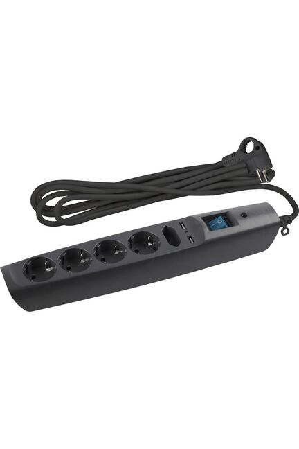Фильтр сетевой 5 гнезд 2м с з/к 10А 1 USB, 1 TypeC черный(выс.ур.защ.) ЭРА в Лесозаводск
