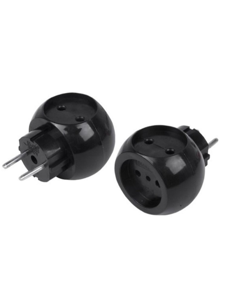Компактный тройник без заземления на 3 гнезда, 6А, 220В, устойчивая «шар» форма, для подключения бытовых и строительных приборов.