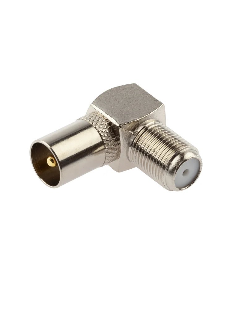 Угловой ТВ переходник F-гнездо/TV-штекер обеспечит надежное подключение в стеснённых условиях, защиту от помех и лёгкую установку.