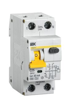 Надежная дифференциальная защита на 25А, 30мА для однофазных сетей, предотвращает утечки, перегрузки и короткие замыкания, простая установка.