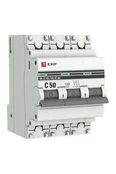 Автоматический выключатель 3P 50A (C) 4,5кА EKF PROxima обеспечивает надежную защиту цепей от перегрузок и КЗ. Прочный корпус, монтаж на DIN-рейку.