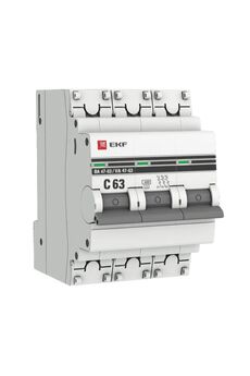 Трехполюсный автомат 63A (C) 4,5кА EKF PROxima для защиты от перегрузок и коротких замыканий. Надежный, компактный, простой в установке.