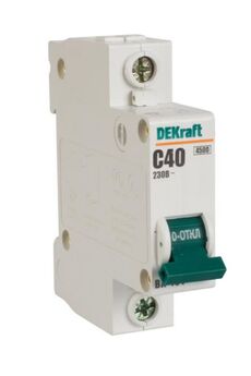 Автомат 1P, 40А, C, 4,5кА, монтаж на DIN-рейку, надежная защита от перегрузки и короткого замыкания, компактный и долговечный.