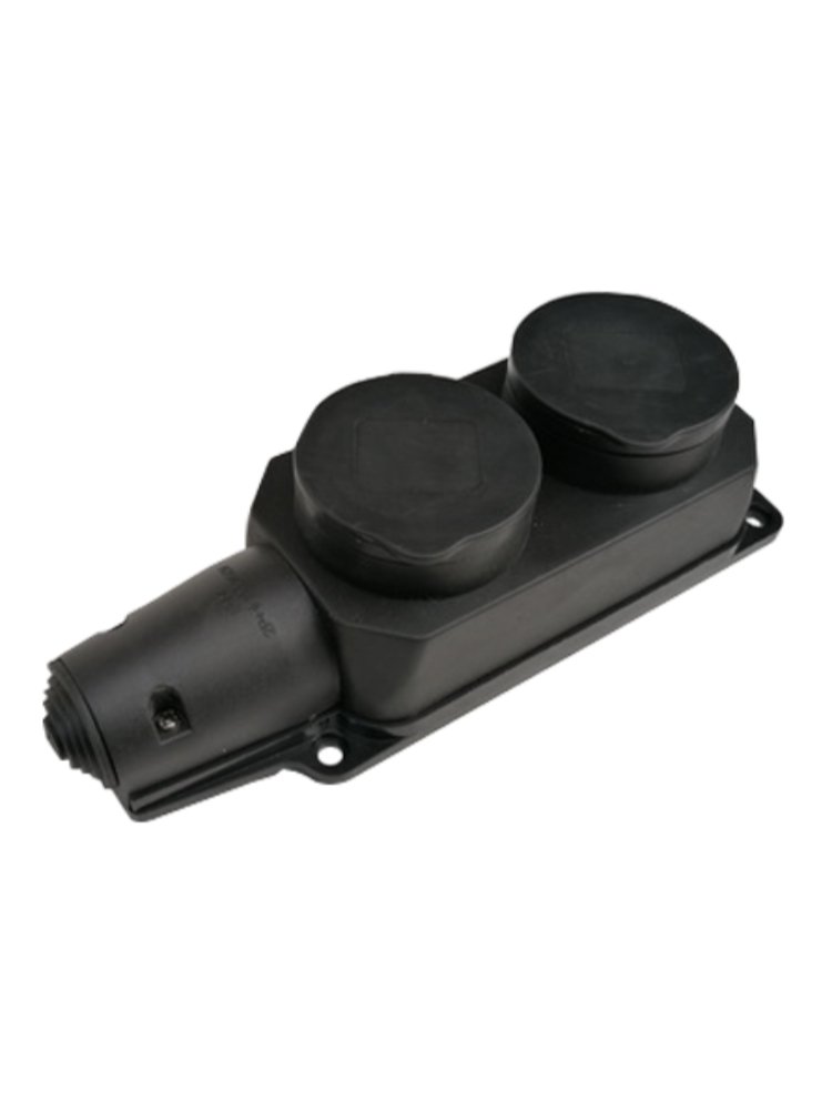 Надёжное решение для наружной и внутренней электропроводки — двойная розетка с защитными шторками и степенью защиты IP44, устойчива к влаге и пыли. Идеально подходит для монтажа в мастерских, гаражах, на строительных площадках, в подсобных помещениях или на дачных участках, обеспечивая безопасное подключение инструментов и техники даже в сложных условиях.