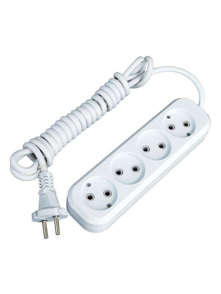 Компактный удлинитель на 4 гнезда с проводом 2 м, ток 10А, провод ПВС 2х1 мм² — идеален для подключения техники в доме и на работе.