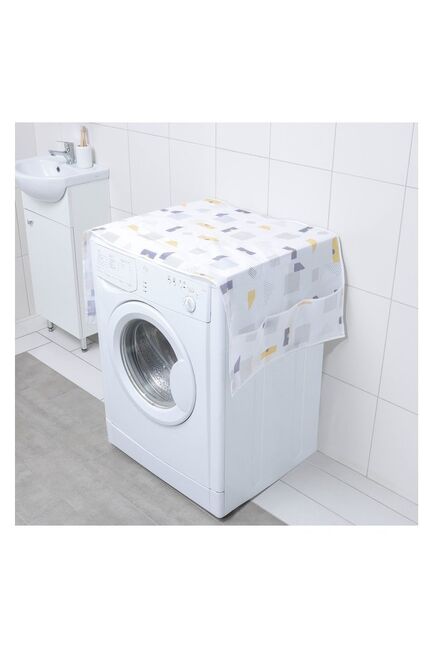 Практичный чехол 128×54,6 см из водоотталкивающего PEVA защищает стиральную машину, имеет удобные карманы и прост в уходе.