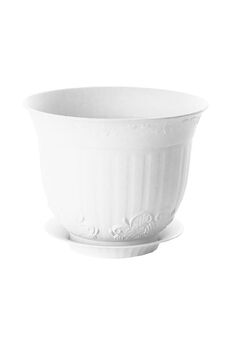 Прочный пластиковый горшок объемом 1,5 л с подставкой, диаметр 170 мм. Подходит для растений любого типа, защищает мебель от влаги.