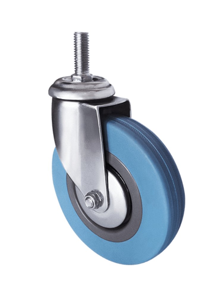 Применяется для работы в помещениях. Эта серия колес часто применяется при изготовлении медицинского передвижного оборудования, различных деталей мебели, складских тележек. Серая резина обладает очень мягким ходом и является достаточно маневренной. Данная опора оснащается двухрядным шарикоподшипником и имеет втулку скольжения оси. Шинка колесной опоры серая резина изготавливается из полипропилена серого цвета, чьей особенностью является шумопоглощение, малая вибрация и отсутствие следов на поверхности. Заводской температурный режим для данной серии варьируется между -20С° и +50С°. В качестве крепления использован болт, который выполнен из специальной стали с оцинковкой. Колеса малой грузоподъемности, используются на медицинской мебели в основной и там где изделие катается по кафелю или плитке, чтобы не оставлять следов. Поворотная опора 50 мм на болте M10-12, до 25 кг, нейлоновое колесо не оставляет следов и обеспечивает плавное передвижение по любым полам.