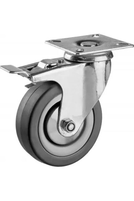 Удобное передвижение оборудования и мебели на стройке или в мастерской обеспечит прочная колесная опора 75 мм с поворотным механизмом и тормозом — идеальное решение для динамичных задач и мобильных конструкций.