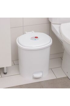 Практичное ведро 12 л с педалью из прочного пластика, легко открывается ногой, оптимально для кухни и санузла, удобно в использовании.