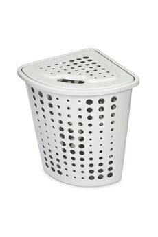 Угловая корзина 45 л легко впишется в интерьер, сэкономит место и сохранит вещи в порядке благодаря крышке и вентиляции.
